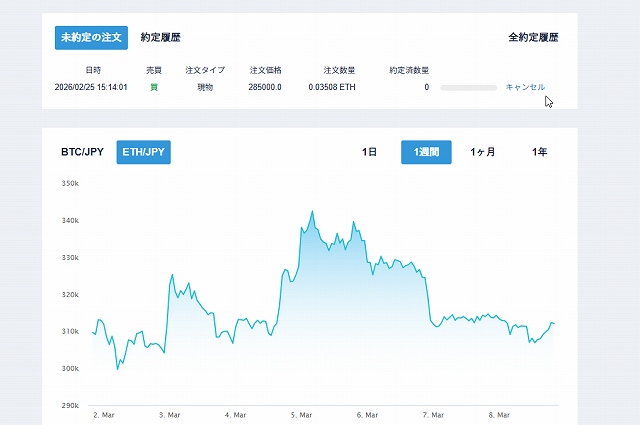 ビットコインの指値は刺さったけど、イーサリアムは285,000円では