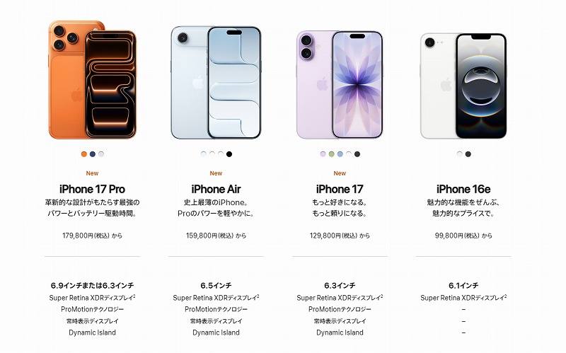 違うらしい。iPhone17にはplusがなくて、画面サイズは6.3インチ